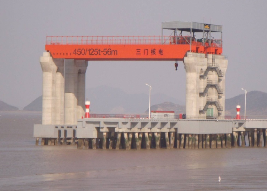 公司設計制造的所有核電廠配套用橋門機、吊車系消化吸收國內外先進技術,結合我公司常規(guī)產品的成熟技術,綜合核電產品更高的安全可靠性要求,遵照GB/T3811-2008《起重機設計規(guī)范》、GB/T14405-2011《通用橋式起重機》、NB/T20234-2013《 核電廠專用起重機設計準則》等標準開發(fā)出的核電專用系列產品,技術成熟,安全可靠,檢修便利,特別適合核電廠各個廠房內的設備的吊裝、搬運就位工作。公司首臺臺橋機為2006年研發(fā)、2007年投入生產的巴基斯坦恰?,敽穗?5/20t吊車,公司首臺臺碼頭固定吊為2008年向三門核電提供的2臺450/125t-56m固定式橋機。近14年的發(fā)展,已向國內外眾多優(yōu)質客戶提供近200臺核電吊車設備。目前制造過的跨度最大橋吊為450t-56m,起重量最大為900t固定吊。